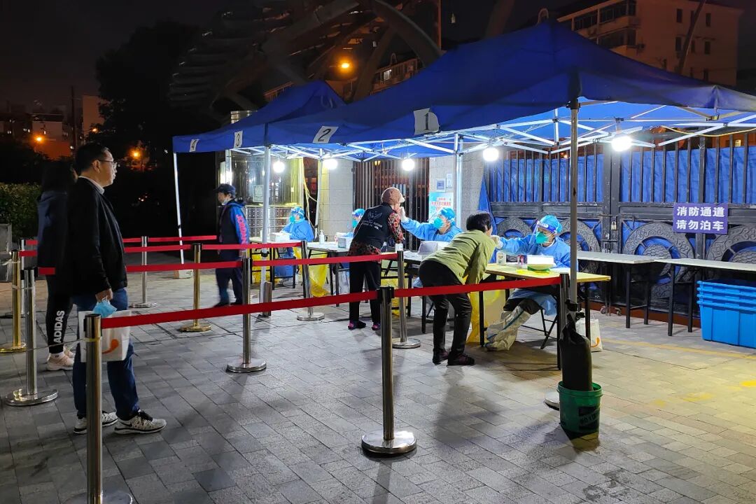 10月13日,杨浦区一小区居民参加核酸采样筛查。(图片来源:视觉中国)