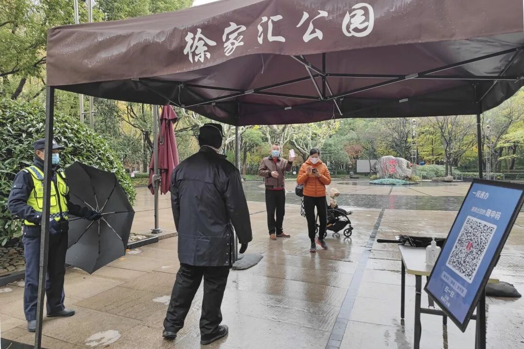 12月5日,上海,徐家汇公园,游客出示绿码入园。图片来源:视觉中国