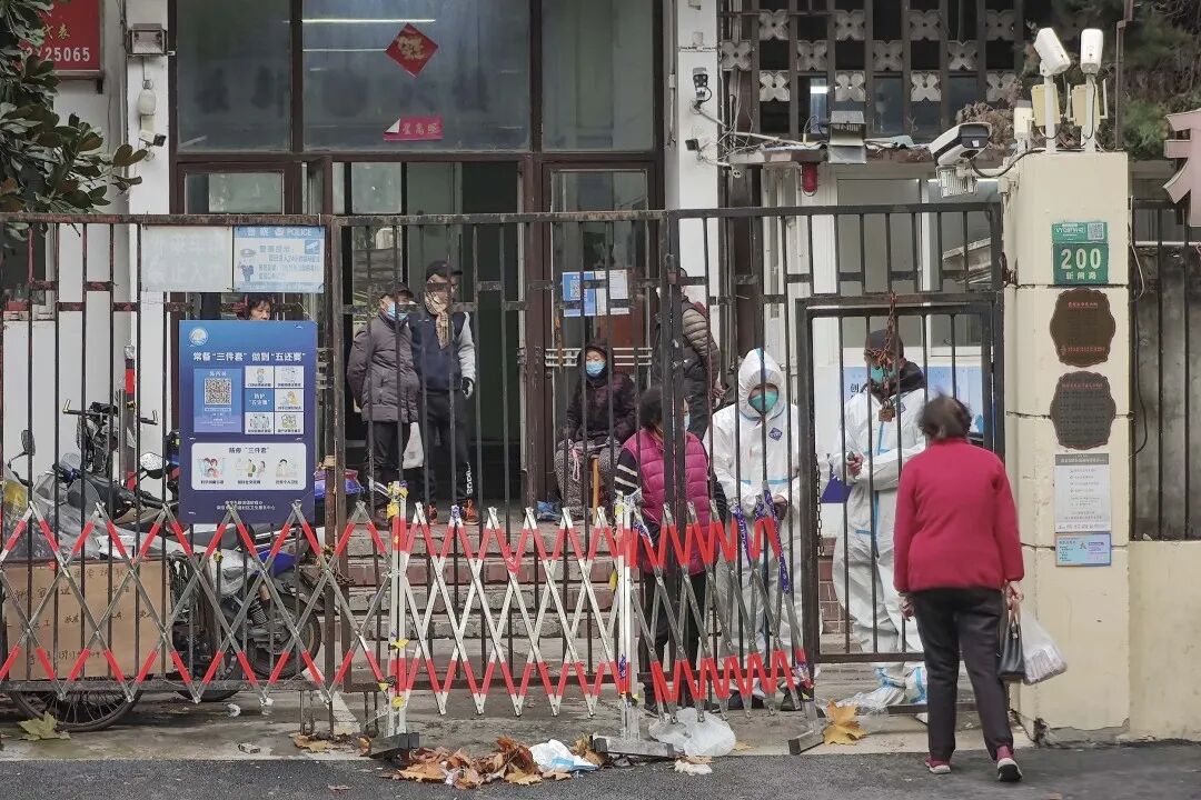 12月5日 ,上海,黄浦区南京东路街道新闸路200号划为疫情高风险区。图片来源:视觉中国