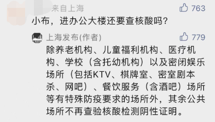 一、全市社区小区、办公场所、餐饮商超及各类公共场所不再查验核酸检测阴性证明,凭健康码绿码、扫场所码进入。