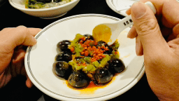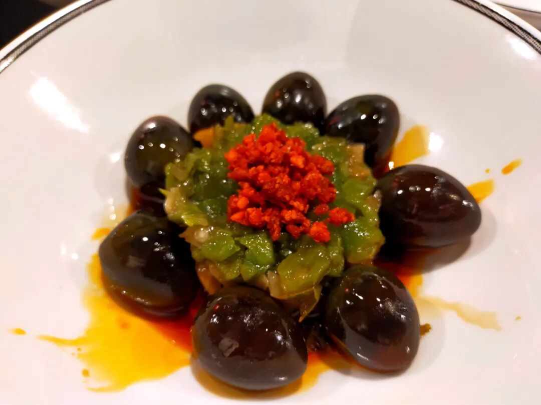 总是被外表所迷惑的小编,看到这个名字就毫不犹豫的下了单。上桌一看,原来是鹌鹑蛋做的皮蛋!我们将皮蛋与辣椒段拌匀,一口一个,吃着倒很是过瘾。