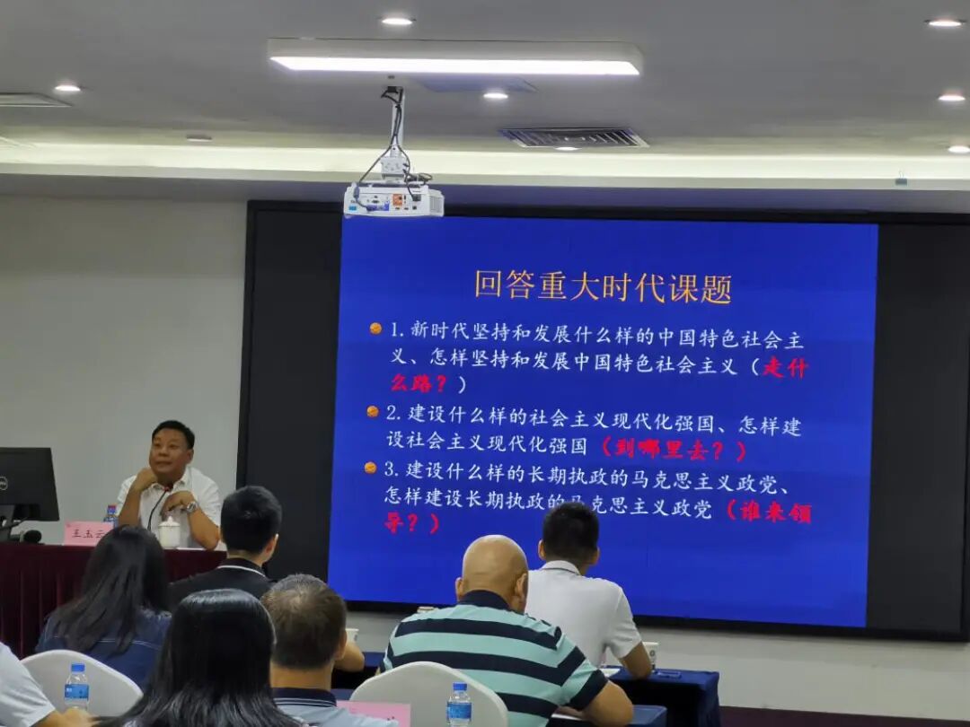 王玉云教授以生动幽默的方式深入浅出地讲解《习近平谈治国理政》第四卷,用“1+2+3+4+5+N”的简易记忆法进行整体导读,尤其是重点解读了习近平总书记关于文化的重要论述。通过王教授的导读,学员们从中深刻地领会了“把文化建设摆在更加突出位置”的重要意义,以学习增强理论认同。