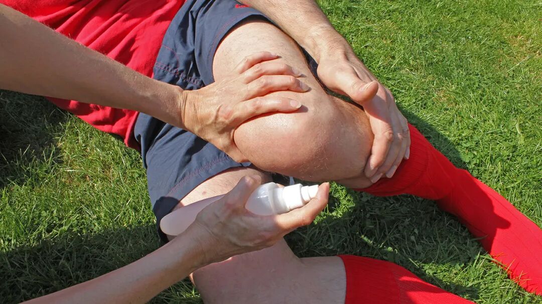 运动员出现软组织挫伤或拉伤时,将氯乙烷喷在伤处,在常压下这些液体会很快地汽化成气体。液体在汽化时需要吸收大量的热量,这些热量一部分从空气中吸收,一部分则从人体皮肤上吸收,造成皮肤快速冷冻,使皮下毛细血管收缩而停止出血,同时使人感觉不到疼痛,这类似于医学上的局部麻醉。所以球员能在激烈对抗受伤后,经过处理又马上回到场上比赛。当然,这只是应急处理方式,后期仍要进行医学处理。