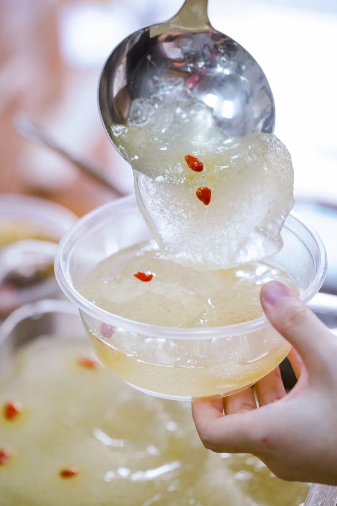 有人说,气泡是手搓冰粉最大的特点,毕竟四川人常挂在嘴边“无气泡,不冰粉”。看到这密集的气孔,就知道来对了地方。