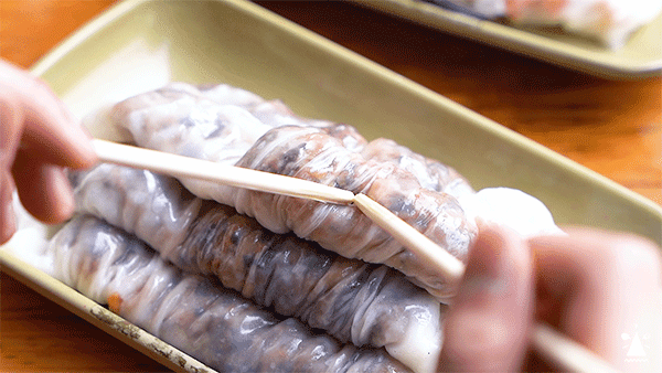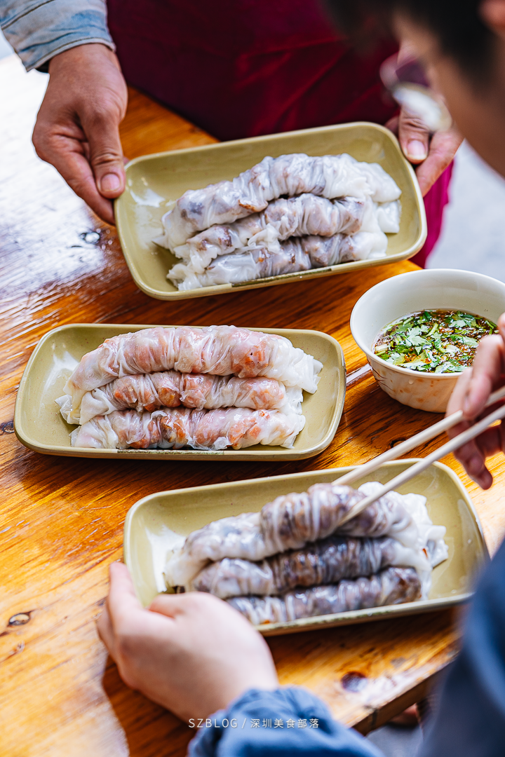 加馅卷皮一气呵成,老板说一早上能做1000多份,本以为在吹牛,后来看到他惊人的手速,着实是吓到我了,难道是遇到了光明“最快”的男人!这个长得像「毛毛虫」的肠粉,就是这次50公里行的目标,村里的人凌晨5点就来吃了。当知道一条1.5元的时候,我还以为我听错了,花了几百块钱打车就为了它?