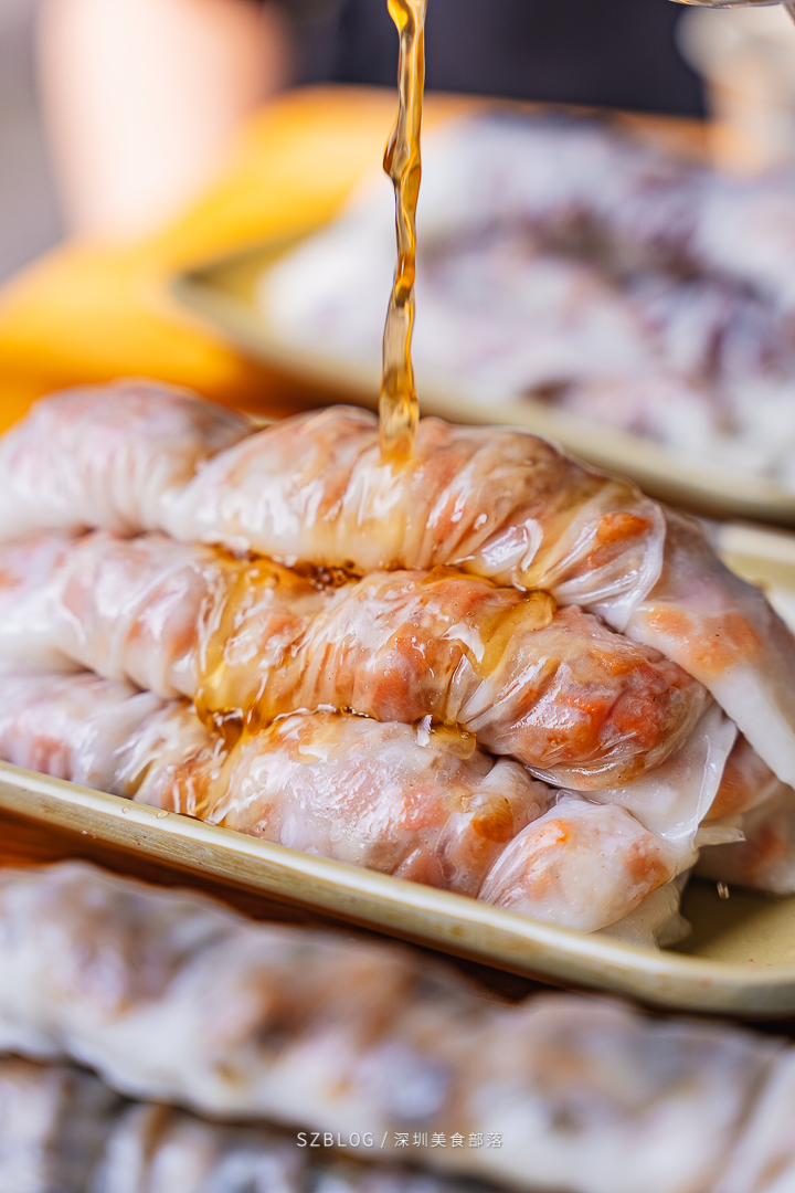 先把肠粉放到碗里泡一会儿,再优雅粗暴咬上一口,在醋的加持下味道出奇的清新,连吃5条都不觉得腻,最后再把醋喝完才算是完美ending~这家店就开在碧眼新村里,9年来只做早餐,下午1点准时关门,有时备料不足11点就会售空。