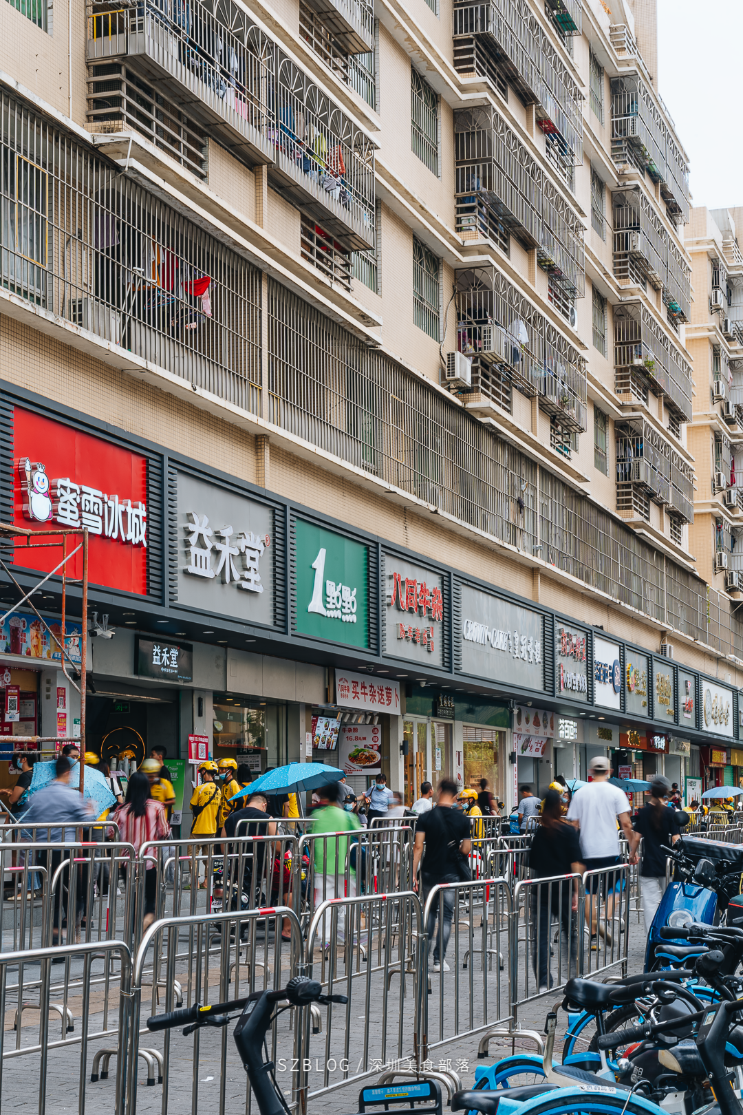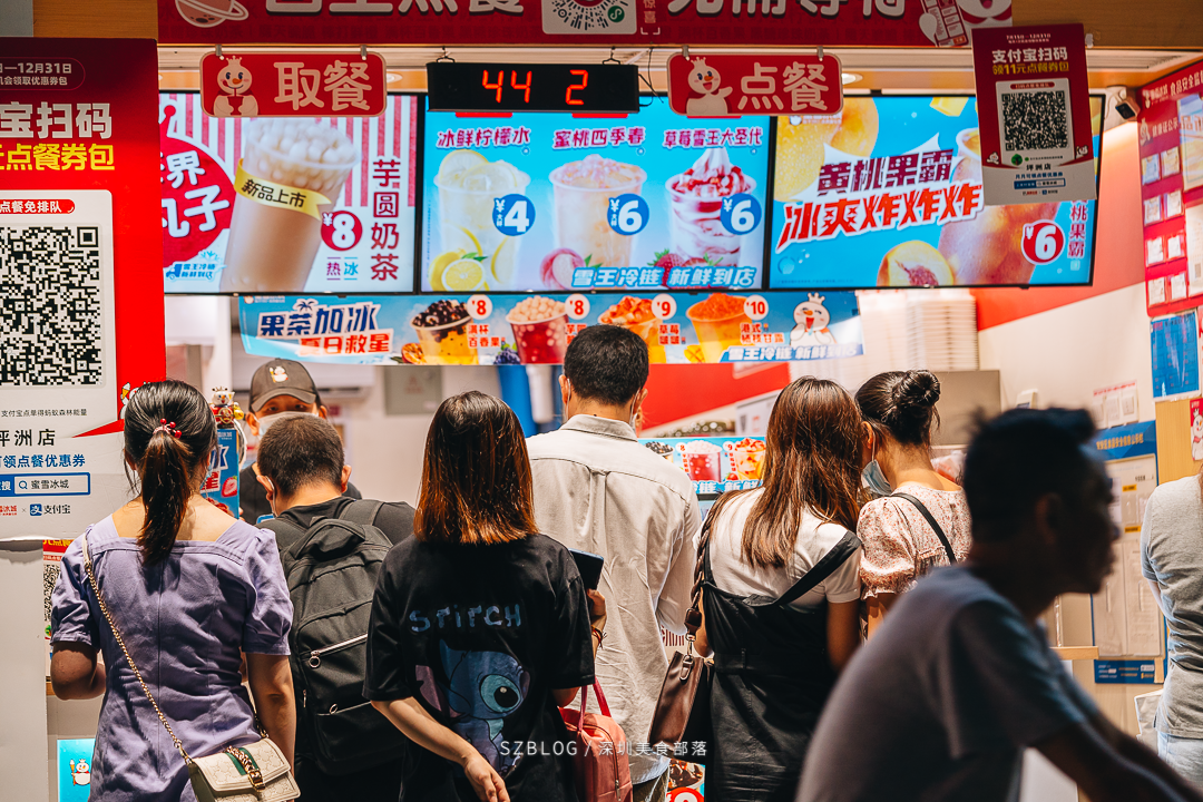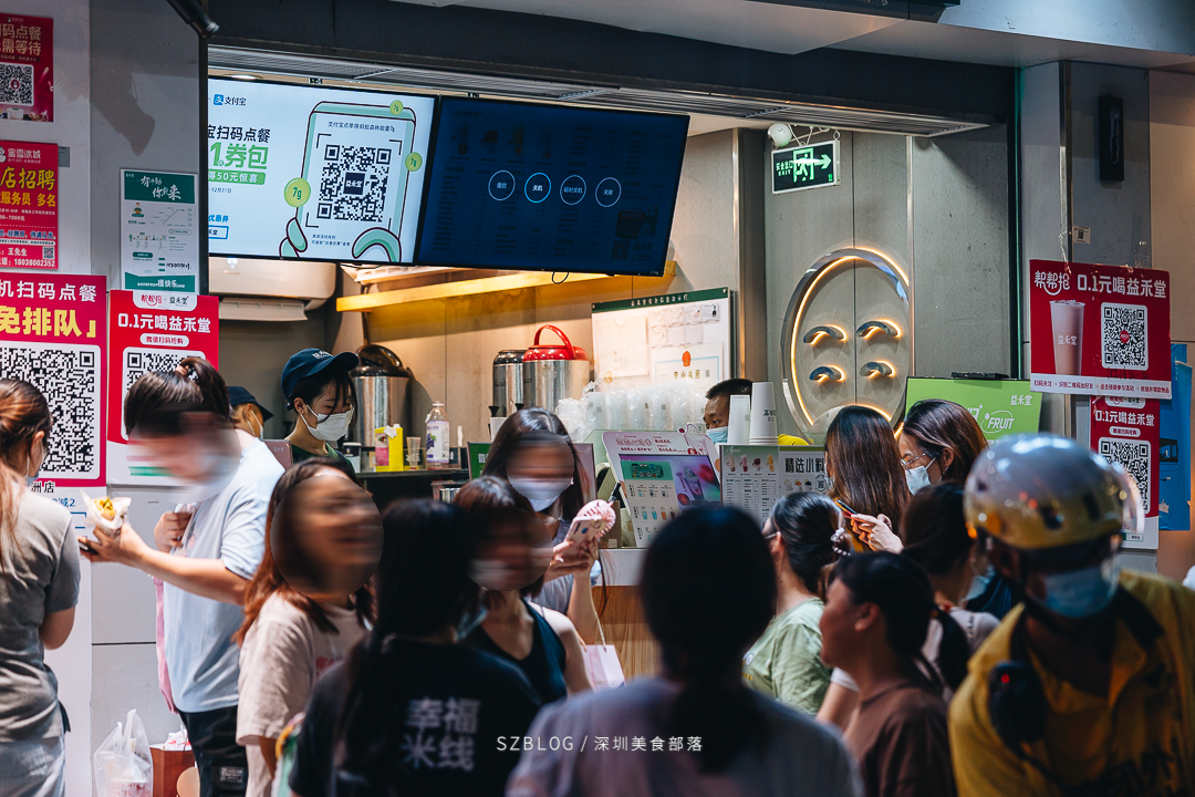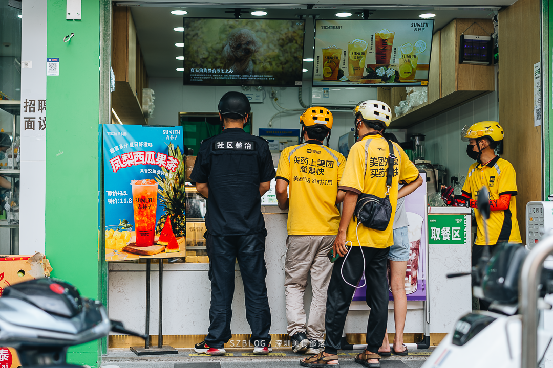坪洲是很多深漂族的第1站,房租不高、生活便利、地铁直达科技园等地,是众多上班族首选的落脚地。说起坪洲,印象最深刻的莫过于高峰期拥挤的地铁,还有小吃摊的美食了。来到热心粉丝安利的「坪洲C口」奶茶街,不由得感慨这真是茶饮爱好者的“快乐老家”。5步一家奶茶店毫不夸张,甚至还能一睹3店紧挨着的盛况,比上次去的上梅林奶茶街还要密集。这条街上,外卖小哥甚至比店员还多,黄蓝色的衣服已成为一道靓丽的风景线。随时可以看到十几位小哥在街上等餐,这种场景太难得了!