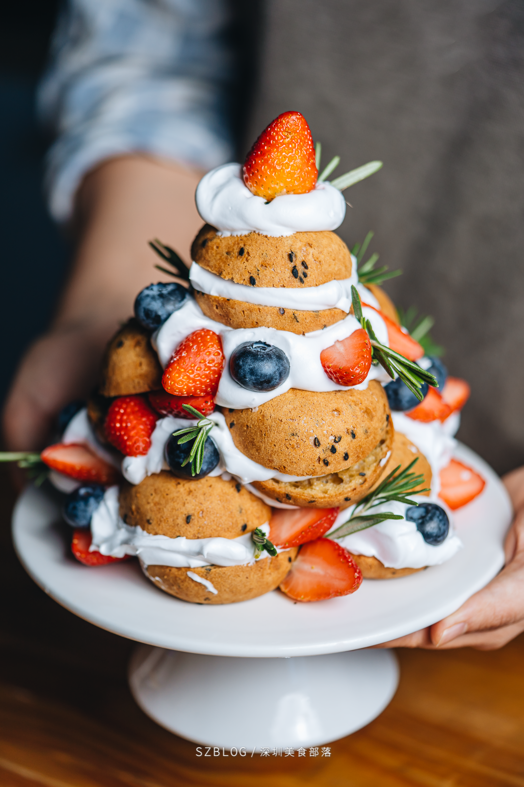泡芙塔做成圣诞树的样子,各色莓果是树上的点缀,既可以减少甜腻,又能让颜值上升一个高度,奶油模仿了冬天厚厚的雪,而且简单到,有手就会。