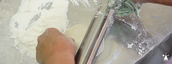 -“皮都是一张张擀的,一次要擀上千张左右。”