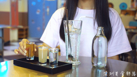 店里的小姐姐教了我方法。先把三小杯各倒一半进杯子,再加苏打水搅拌匀。再根据自己的口味调试,想喝得健康点的妹子可以用蜂蜜代替果糖的甜度~