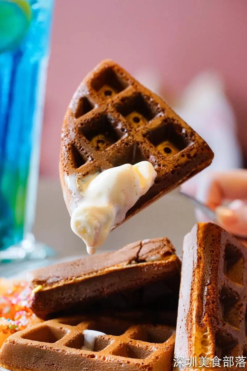 华夫饼是巧克力味儿的,配上两大颗冰淇淋球,真的是从头到尾都hin甜,软妹子一般都会点这个。