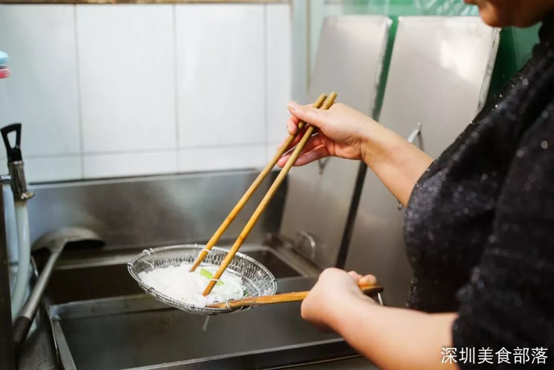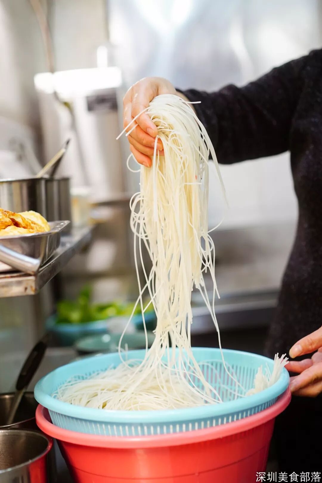 没有什么花里胡哨的做法,清水烫粉,然后再浇上一勺大骨汤,整个过程不到3分钟就可以搞定。煮好的米粉泛着晶莹剔透的光,看起来贼诱人。