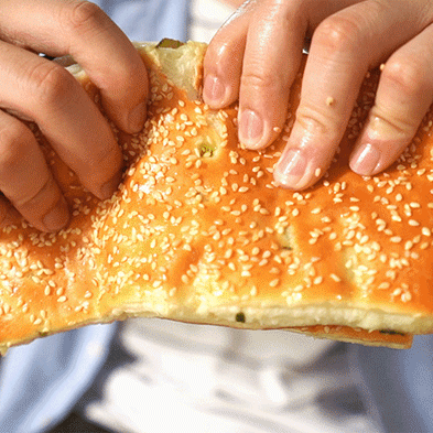咸的馕饼比我的大脸还巨型,上面洒满了芝麻,外表烤得很酥脆,吃起来有股奶香和芝麻香。