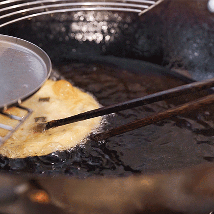 酱爆虾饼的虾原本就是带壳的,这样炸出来会比较香,觉得不方便的话也可以让老板去壳哦!