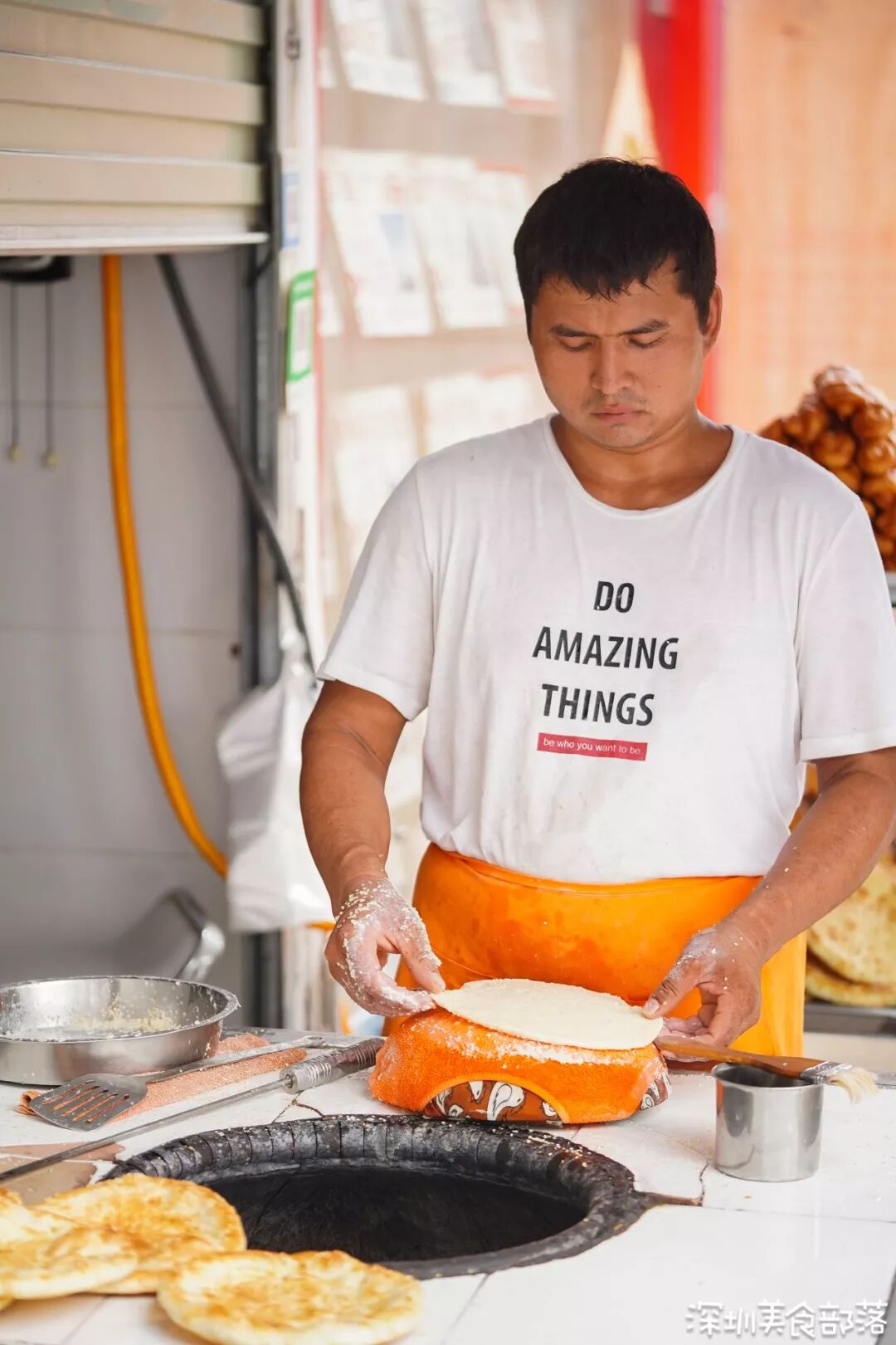 这家店在华强北开了十几年了,由一对维族夫妻和徒弟在经营,馕饼都是5元一个,生意比隔壁房地产还好🤐