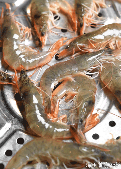 每盘12只基围虾,一上锅蒸,好几只都被烫到想逃离!新鲜的虾肉,紧实又有弹性~