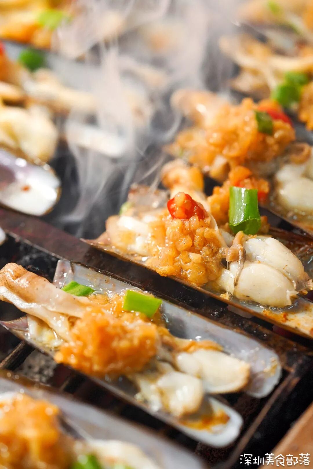 烤小圣子王,滋滋滋,搭配上秘制蒜蓉,在烤架上的时候我就想动手!