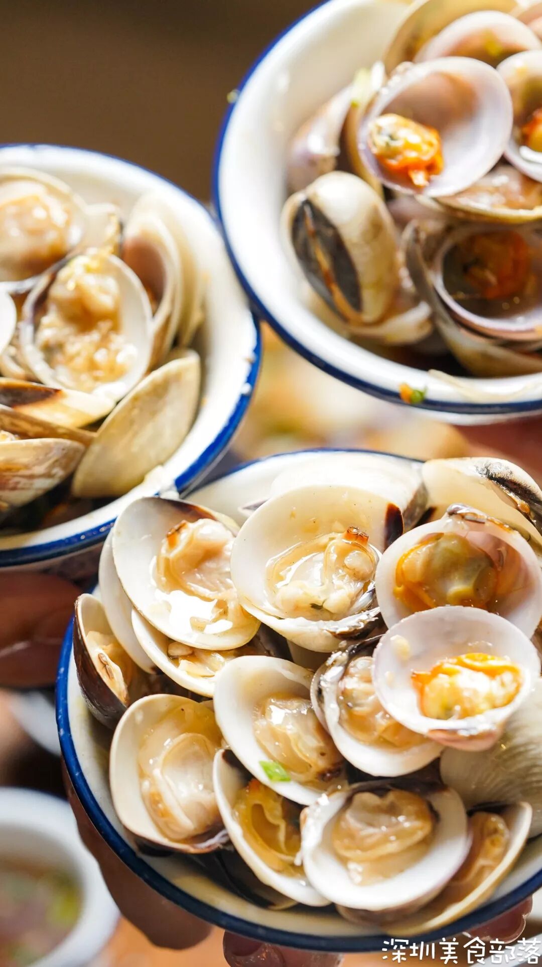 沙白、白贝、红口、堆得满满当当的,先吃原味,后吃酱汁味。