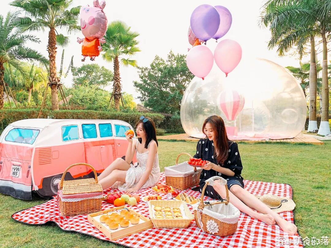 餐厅后面的草坪可以get到INS同款粉色泡泡屋,还能可以提前预约野餐道具!来这泡上一壶下午茶,吃吃甜点,拍拍照,好心情可以延续到明年!