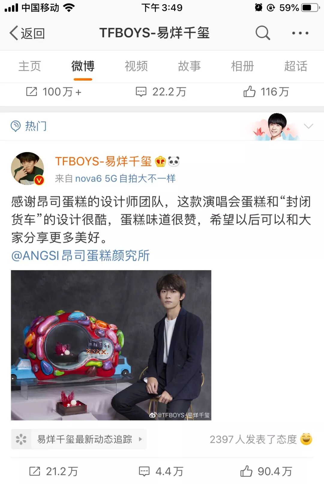 这个设计师蛋糕品牌玩大了!没想到跟易烊千玺合作了一波,玉尔首场个人演唱会时,千玺不光亲自参与【千喜蛋糕】的设计,这次又种草了颜值爆表的年轮蛋糕~