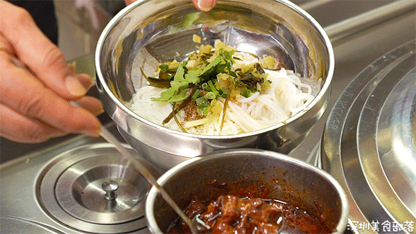 这款牛腩米粉是店里的招牌,10元/份。牛腩量不算多,但肥瘦比例恰到好处,加上海带的硬与米粉的软,很巴适。