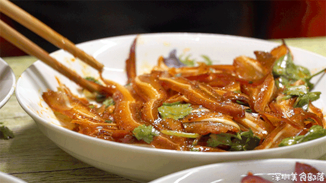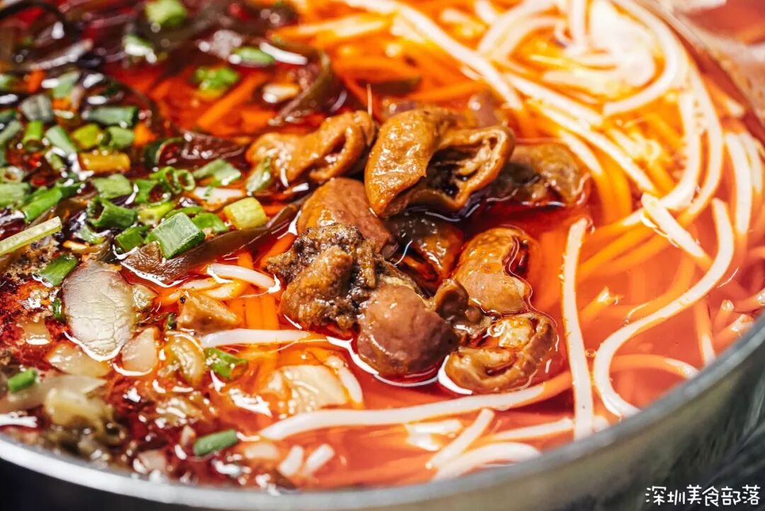 田叔温馨提示,吃粉前一定要先拌匀,第一次来店里吃粉记得不能吸着吃,容易被呛到!他家的肥肠粉一点异味也没有,肥肠卤到软烂且入味,又麻又香又辣!如果一碗粉不够饱的话,还能加一个溏心荷包蛋。用的都是德青源鸡蛋,即使被我放得有点冷了,还是会爆浆!不爱吃米粉的人,还有面和河粉可选,也可以选择干拌。这里的卤味种类很齐全,连猪尾巴和猪拱嘴都有,果然四川人手中,万物皆可卤!每天卖完就没啦!湿拌跟我们常吃的凉拌有点像,卤味在田叔手中不断翻滚,搅拌上百次,料汁与食物完全融合入味!店里的干碟是老田自制的,别看它外貌平平,却俘虏了万千客人的舌头。卤味在干碟上滚上一圈,尽情享受四川香辣带来的痛快!还有千张、鸭腿、猪肘、鸭肠、猪舌等10+种卤味,都是按斤或者个数计价的,想吃软一点的田叔也能帮你加热~这家店藏在龙岗的城中村里,作为非四川人的我,也无法评判味道正不正宗,但是田叔真的是个很容易让人开心的大叔。如果你也是个很健谈的人,可以过来跟他battle一下!