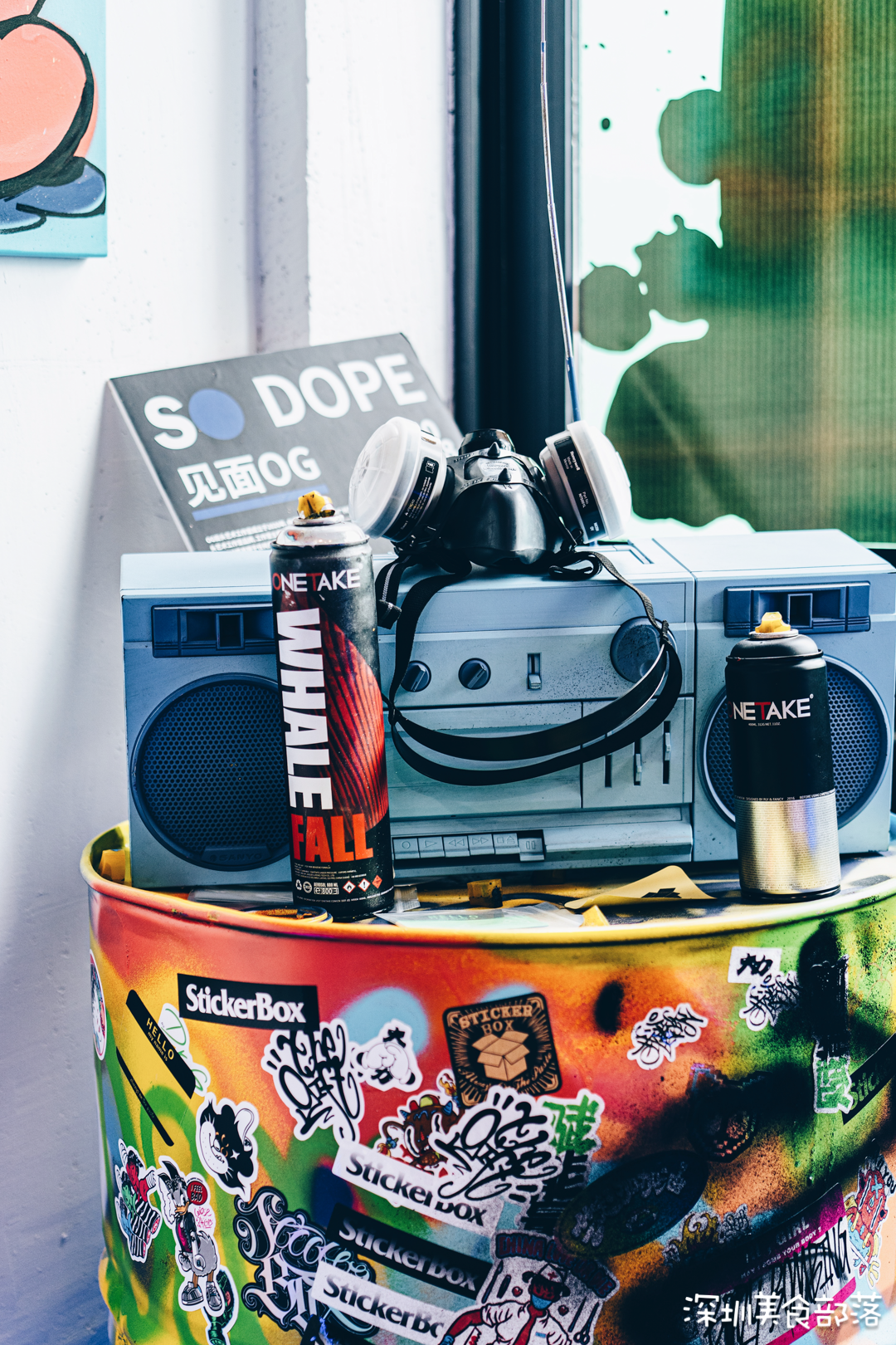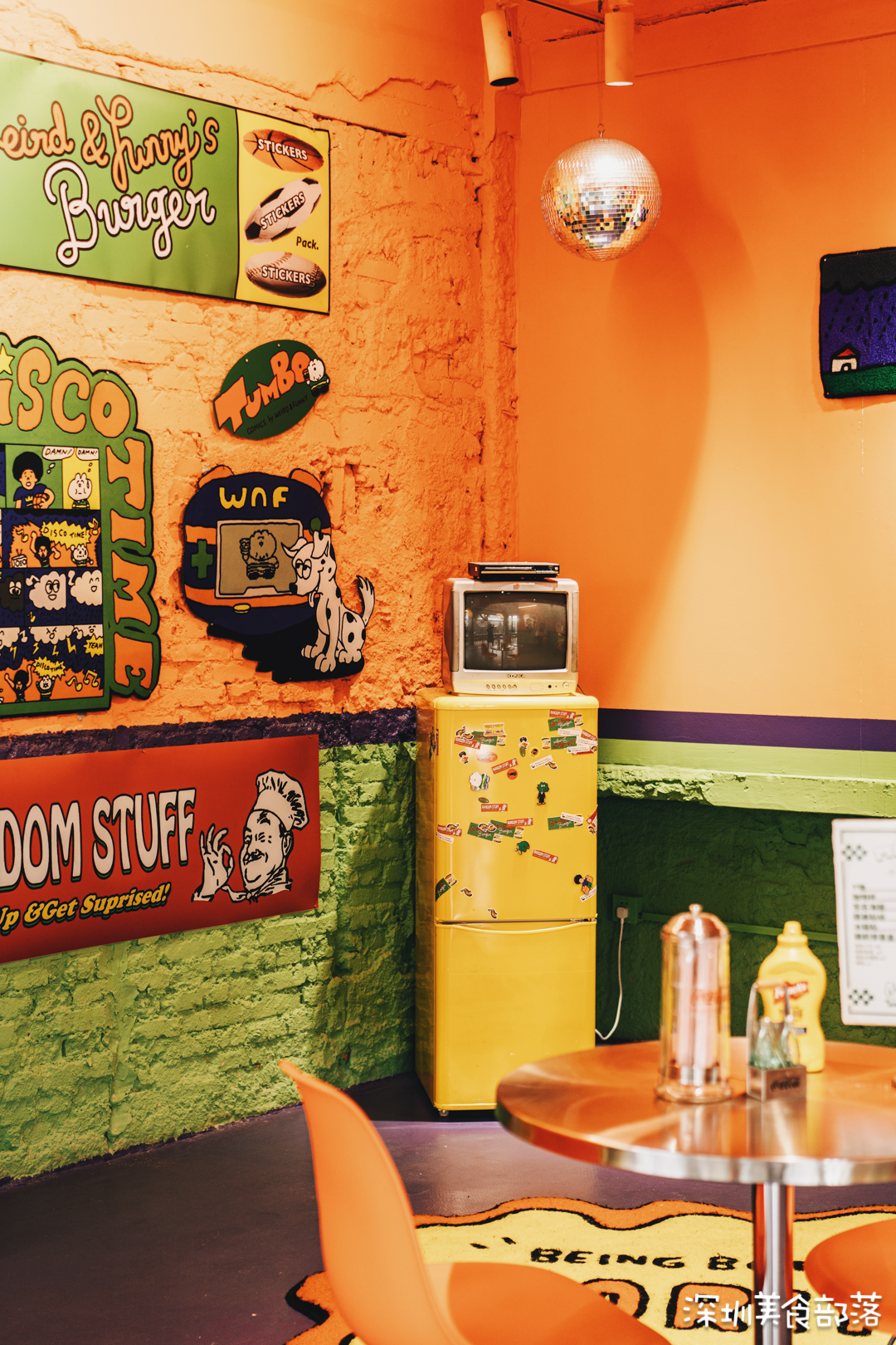 这里有很多街头艺术家的涂鸦作品,他们的视觉创意巧于打破视觉局限,是当代年轻人的态度与潮流品味。■ Weird&Funny's Burger展 ■一个插画与设计的平面工作室,美式复古插画风格,以汉堡为主题,陈列了许多高饱和度色彩的周边,门口的大汉堡很可爱~