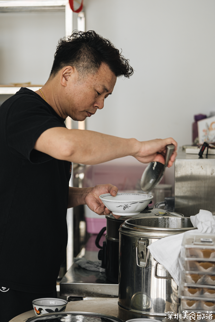 炸油池其实就是油炸萝卜丝,每个地方的叫法都不一样,猪脚圈、油炸粿、油糍....但在深圳并不多见。贵嫂的手速特别快,圆形的小勺加上萝卜丝,浇上一层薄薄的面粉浆,几步功夫就可以送进油锅。