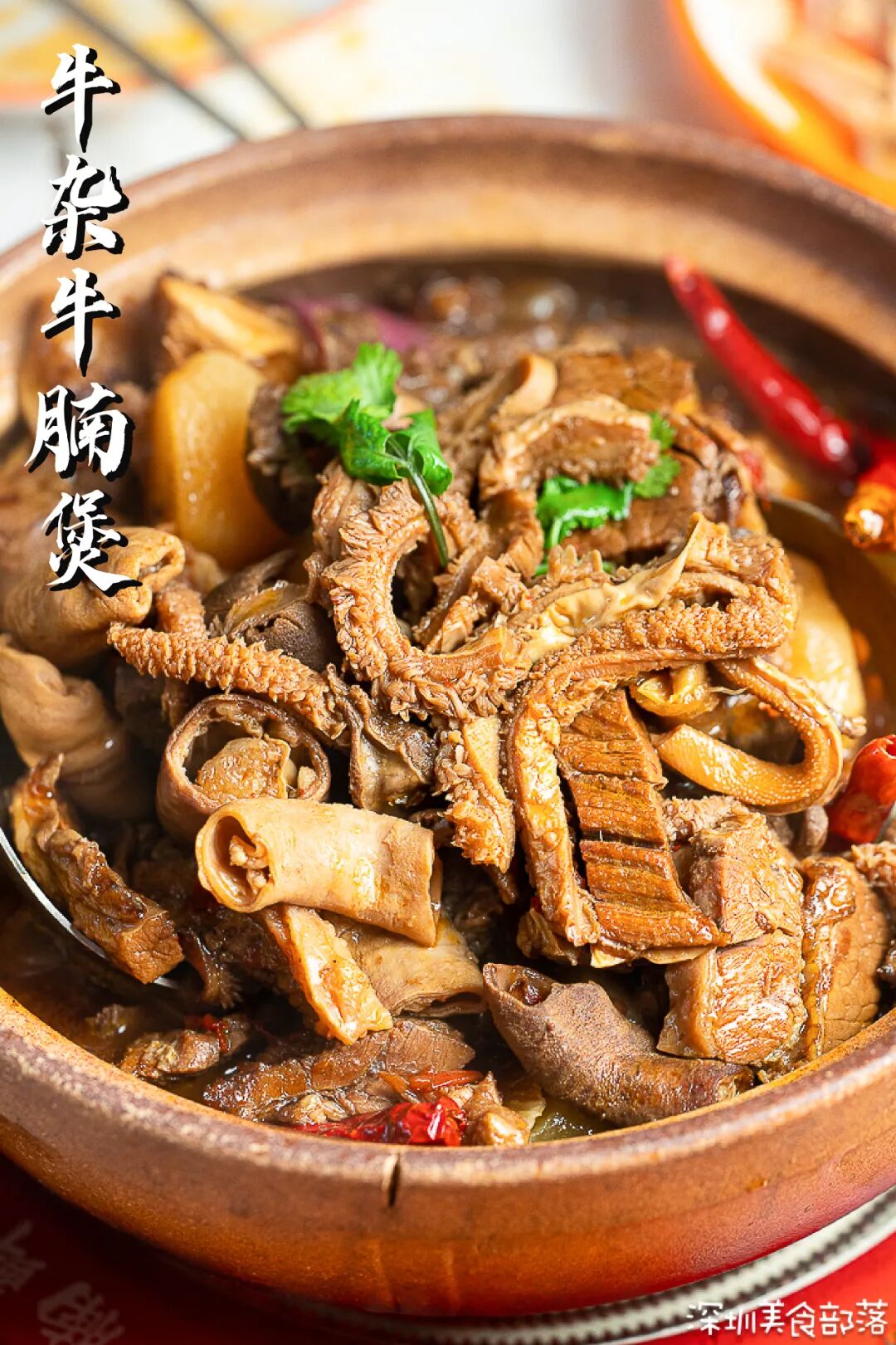 牛杂处理不好容易有异味,这里专门挑选成本更贵更优质的牛杂,经过3遍以上的清洗工序才算放心。一锅里面有牛肚、牛肠、牛肺,全部被煮的软烂入味,等的久也值得!