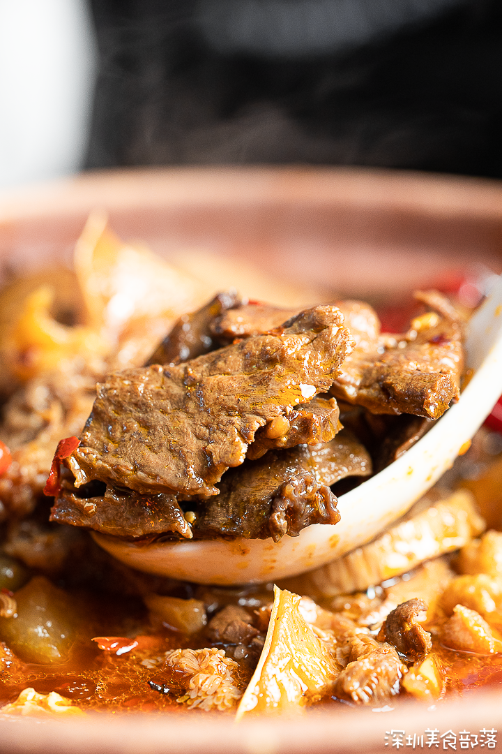 香辣牛腩煲是店内的头牌,吃过的熟客大多都会推荐它。第一眼千万别被红彤彤的外表吓唬到,微辣的口感,大部分广东宝宝能够接受。
