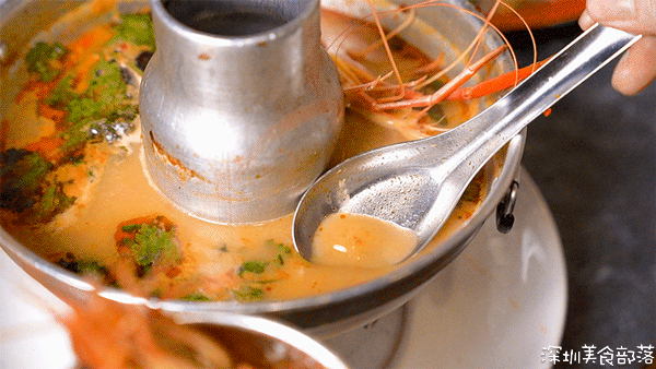 每天新鲜熬制的汤底,罗氏虾、菌菇、贝类等食材作为辅佐,最后淋上自制辣虾油,浓郁的酸香气让我不由自主的咽下口水,真想快点喝上一口~