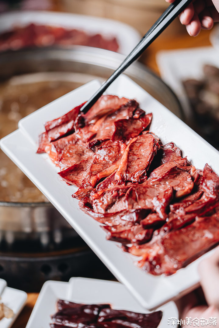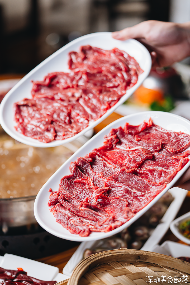 下锅涮20-30秒便可,肉中还夹杂着不少树叶状经络,肉质很厚实,嫩滑之余还能吃到一丝胶质感,凭这口感完全可以c位出道!