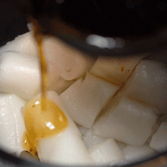 在深圳也有很多港式的混酱肠粉,但是虾籽肠粉还是第一次吃!放在蒸笼的肠粉炊烟袅袅,在招牌和灯光衬托下很有氛围感~肠粉倒入秘制的海皇酱搅拌,最后撒上虾籽粉包裹着,非常入味。端上桌,香喷喷的虾籽味直冲鼻,拿起竹签戳着吃像是在吃串串一样,太满足啦~猪油捞饭是店里的招牌,别看这只有小小的一碗,其实猪油渣的制作很麻烦。陈哥说10斤的五花白肉榨到最后也只有1斤左右,所以每天限量卖出,来晚了就没咯~抓一把猪油渣放在锅里煎炸,没有多余的配料和繁琐的步骤,猪油渣的香味马上就弥漫出来。最后的酱汁才是整碗饭的升华,这是专门在香港带来的。倒入米饭和脆脆的猪油渣融合在一起,