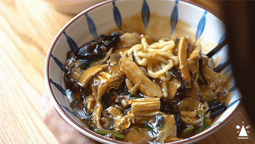 酷似乌冬却又比乌冬更扎实的口感,也靠着准确的煮面时间。标准计时四分钟,连面条都比上班的你准时,还不反省一下自己吗?