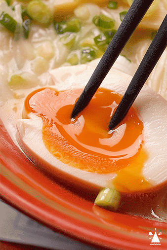 溏心蛋是日本无菌蛋,模拟温泉水温65度热煮8分钟,冰泡8分钟。保证每一颗出品一致。划开是亮丽的焦糖色,蛋黄柔软的像奶油口感,入口是浅浅的咸甜。大胃王可以续两瓣溏心蛋也只要8元噢~
