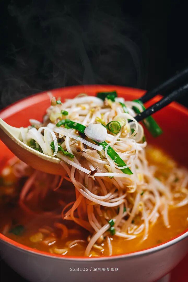 味增拉面的三大特点:一是盖满的豆芽菜和猪肉末,二是韧劲十足的粗面代替拉面,吸收汤汁量更高,嚼劲弹牙简直100分。三是加入味增的特制骨汤,相较于豚骨汤入口更清新,不油不腻。