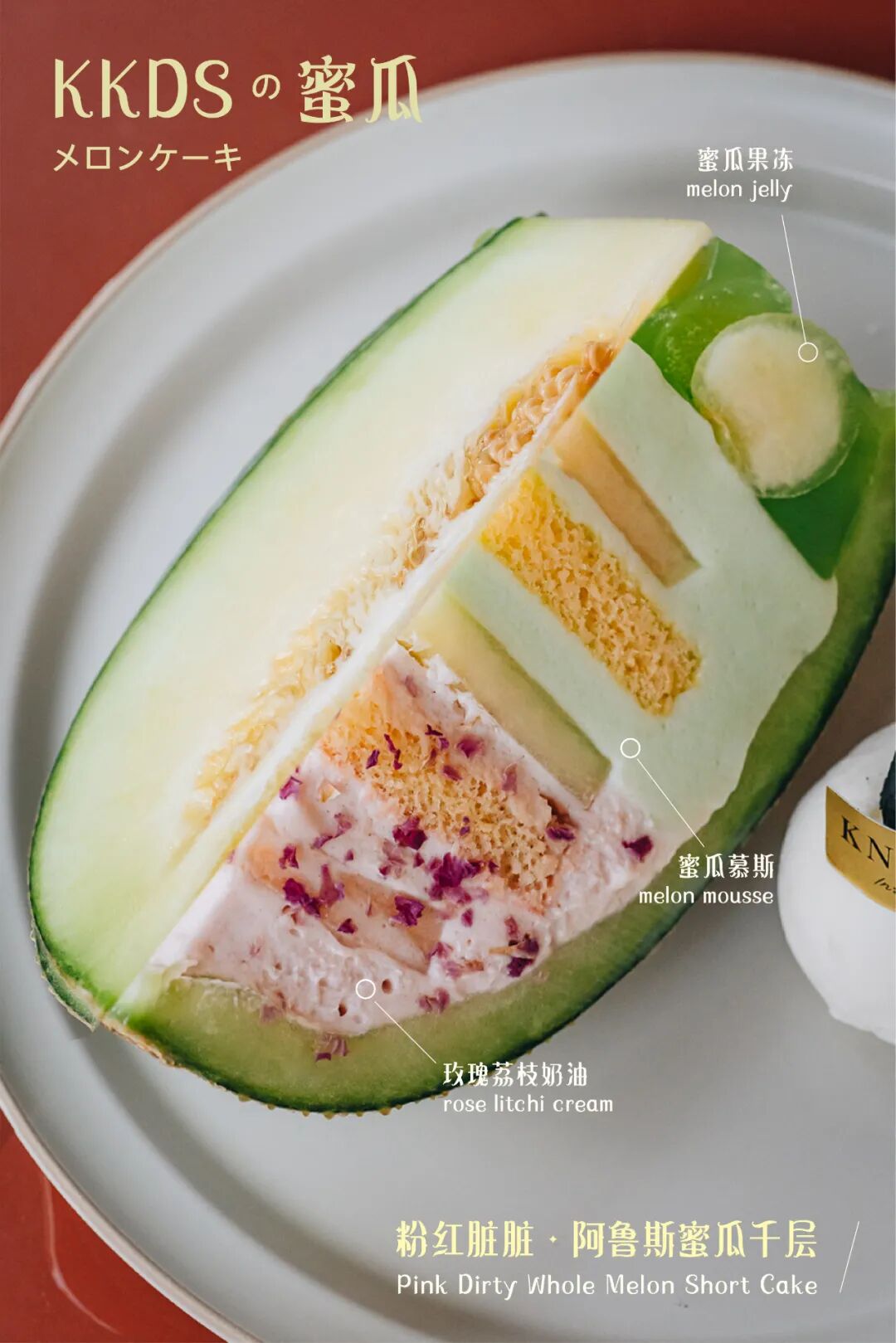 所有的蜜瓜系列都是选用日本名种“阿鲁斯”网纹蜜瓜,由KNOT KNOT特约农场培育。历经90天的完熟生长后再筛选,比母胎solo的我选人生第一个男朋友还严格。