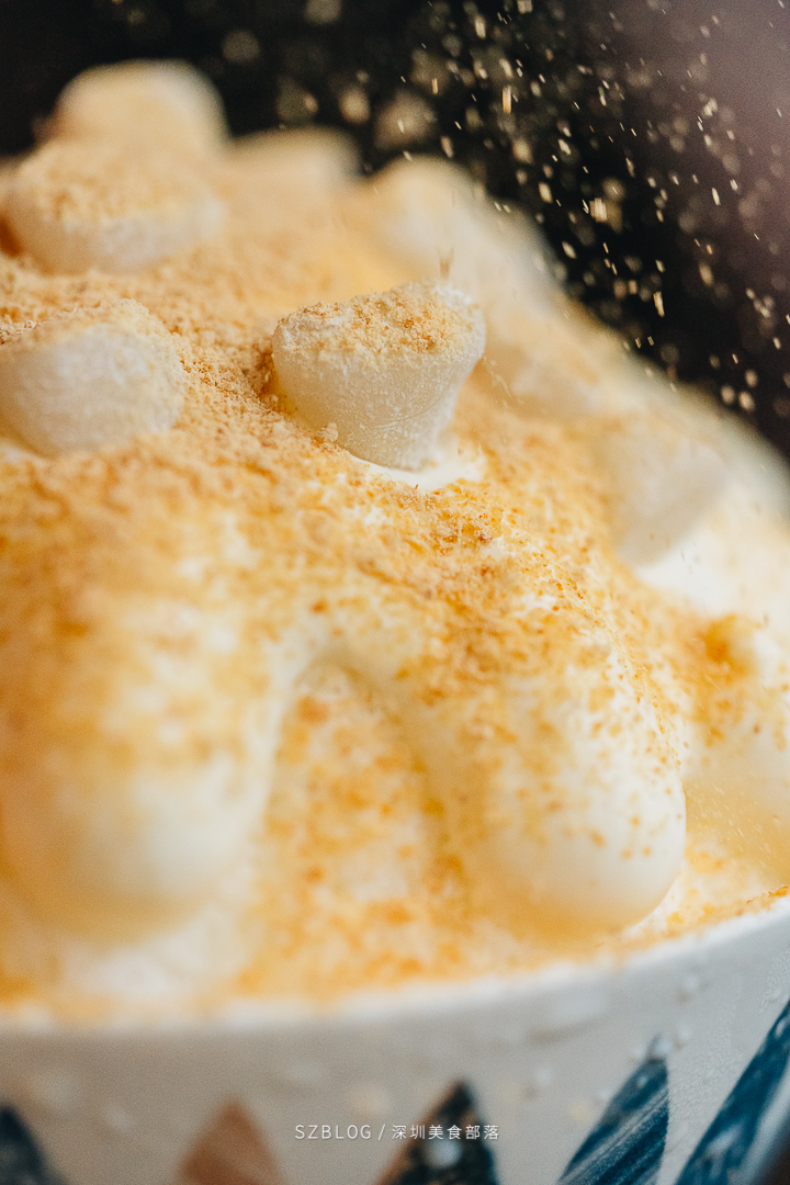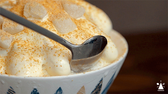 [年糕牛奶雪花冰]外表奶fufu的!年糕经过处理后沾满了“糖霜”,再一颗颗按进奶盖里,加上细腻的黄豆粉!吃下一口,满满奶味!刚看到[咖啡雪花冰]图片时,还以为又是什么“栗子蛋糕”新品呢!万万没想到是用咖啡原液+奶盖做成的雪花冰,咖啡浓郁的香味和坚果的酥香弥漫在整个店内,幸福感max!你敢信?这份看起来造型独特却单调的[咸蛋黄雪花冰],店员义正言辞地说:这可是N多人心里的白月光!奶盖同咸蛋黄一起打,舌尖一抿都是咸蛋黄的小颗粒。果然,万物皆可咸蛋黄~“你看这碗芒果牛乳比我脸还大!” “今日份吃冰已饱,勿cue”这份比脸还大的[芒果牛乳],是店内牛乳系列的NO.1!厚厚的芒果果泥附着在冰面,芒果本命者真的爱到不行!分量特别大,很适合share,如果不是怕肠胃罢工,吃完这份我还得来一份!日韩系风格的装修大气又精致, 大大的樱花树更是加分加分!约上小姐妹们,在炎热的夏天,听一首某个乐队的专辑,吃上一碗冰冰的雪花冰!夏天,如此再好不过了吧~
