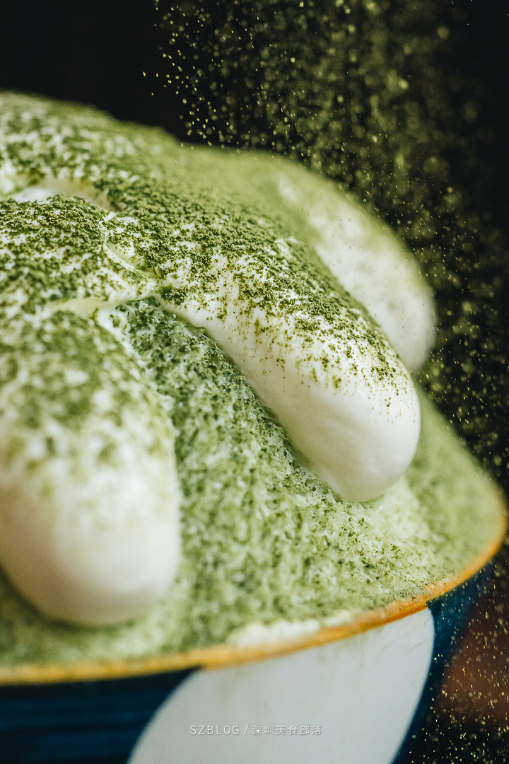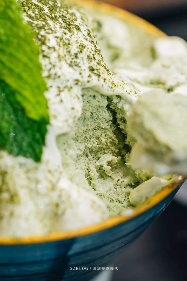 [抹茶雪花冰],店里当之无愧的“头牌”!店员说点这款的人可太多了,每天光撒粉都快都成“帕金森”了!抹茶底上一层厚厚的奶盖“王冠”,再均匀撒上一层细细的抹茶,成品还是很让人惊艳的。奶盖分量也很足,底下的冰都快吃完了,上层的奶盖还有剩余~足有面碗大的碗,将绵绵的冰底堆成了一个“小丘”,店员说为了口感更加蓬松细腻、入口即化,冰打得细腻,没有一丝冰渣。细软地让人好想拿手戳一戳~我不信只有我有这想法~!小红书上的“打卡照”,有一半以上都是这位“头牌”的身影,这足以证明它的“人气”!超高的颜值,随手一拍都是大片!美中不足的是!拍照的速度跟不上它化的速度~(泪牛满面...)![]()