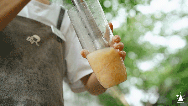 鲜榨黄皮汁+绿妍茶底,按照1:1的比例混合,余韵是淡淡的花香与茶感,还有类似白胡椒的辛香,久久回荡。