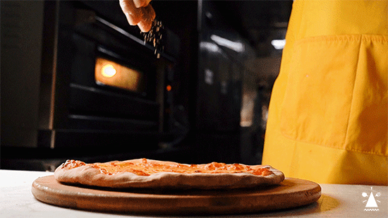 老板自熬的新鲜番茄酱做基底,再撒上马苏里拉芝士碎。无过多的技巧,全程只讲究一个:快,不然饼皮会因为湿度过高沾底。