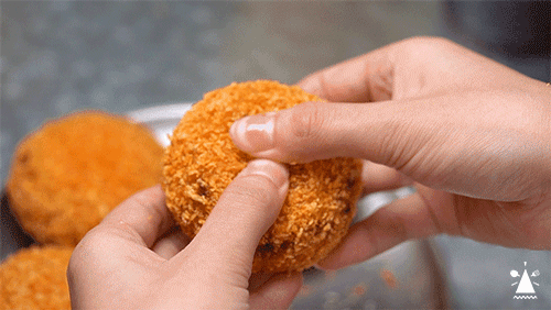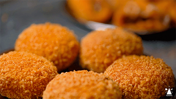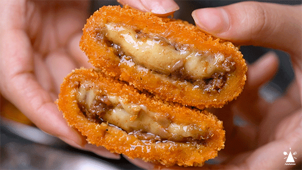 饼在和好的面糊中裹上一层,再撒上面包糠,重复两次后才能下锅,这是为了让面皮能够保持酥脆,又不会容易爆开。