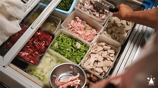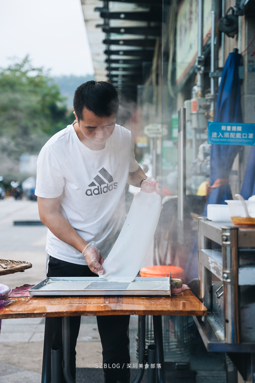 不愿出镜的老板卢哥告诉我们,一开始只有左边的店铺,后面生意渐渐好起来,索性也把隔壁的租了下来。刚看见时,还以为邵哥蒸的是肠粉,一问才知道做的居然是粿条!