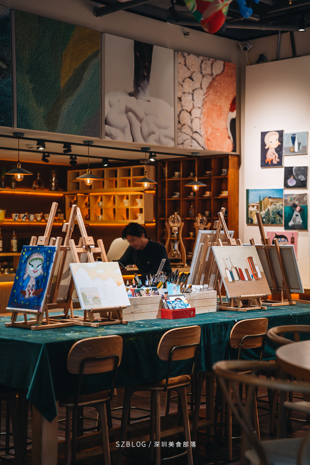 周末这里还有艺术培训,所以店内能看到的画,都是来上课学生的作品。在微黄的灯光下,艺术氛围感一下就渲染了整个店铺。在这静静地坐着,似乎也得到了艺术的熏陶。