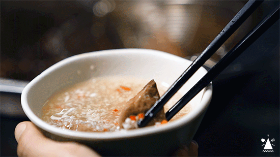 刚煮好的粉肝,用筷子轻轻一夹就断了,真的入口即化,粉粉糯糯,完全没有腥味。蒜泥醋潮汕人懂的都懂,吃起来更加清爽。鹅肠中的爱马仕——狮头鹅鹅肠头,每根肠都有属于它的独特标志“箭头”,老饕一眼就看得出的好料。在卤水锅里“三起三落”,吃起来才会卜卜脆!老板笑着说,对鹅肠最大的尊重,大概就是涮它的时候千万不要玩手机吧…