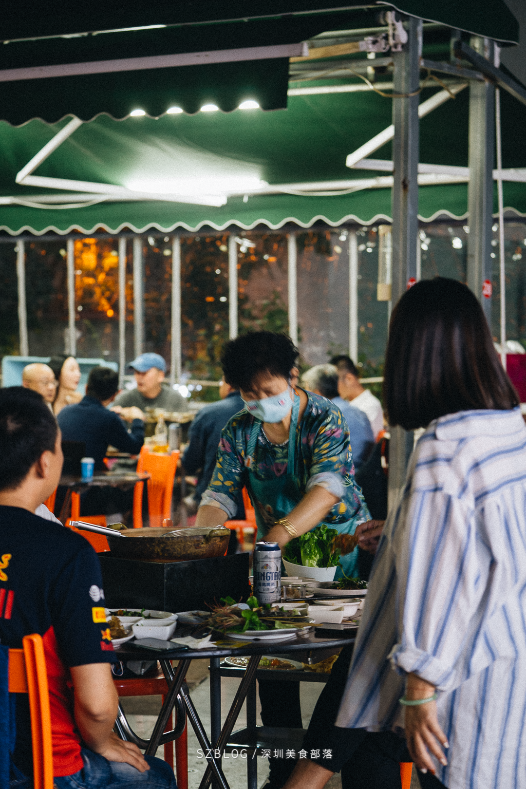 每天下午5点,开始在店前张罗摆放桌椅。很快,这里就成了食客汇聚地。来这里的人,大多操着熟悉的潮汕话,我一晃神,以为是回家了。有的人下了班匆匆赶来,有的人早就在这里觥筹交错,有的人在这里开始了属于他们的夜晚,有的人会在卤水火锅的雾气里,感叹一句:“人间值得。”