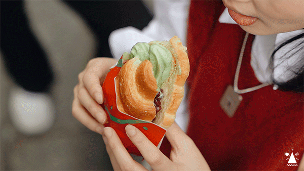 麦当劳的网红心冻角,抹茶口味的冰淇淋被烤好的可颂包裹,还撒上了甜甜的红豆,蘸着吃or直接咬,两种吃法你Pick哪一种呢?