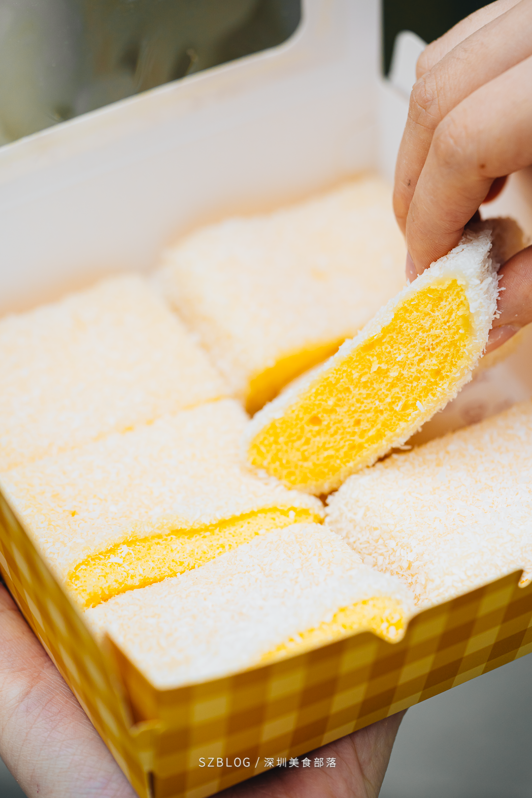 米奇还强烈推荐我试试雪花蛋糕,也是店里的人气选手。20元/盒,里面的蛋糕都是现蒸的,外面是层椰丝和糯米皮,旁边有人甚至专门买了3盒打包走。一盒里面有6个,虽然外表上看着平平无奇,但味道确实惊艳了我。蛋糕口感松软,外面的糯米皮软韧有弹性,吃起来不太甜,这波安利确实不亏!我喜欢吃糯米糍的时候,点几个钵仔糕。店里有红豆、百香果、提子等5种口味,都是3元,我最喜欢的是百香果口味了。