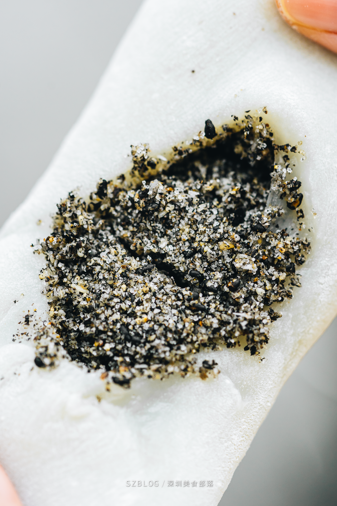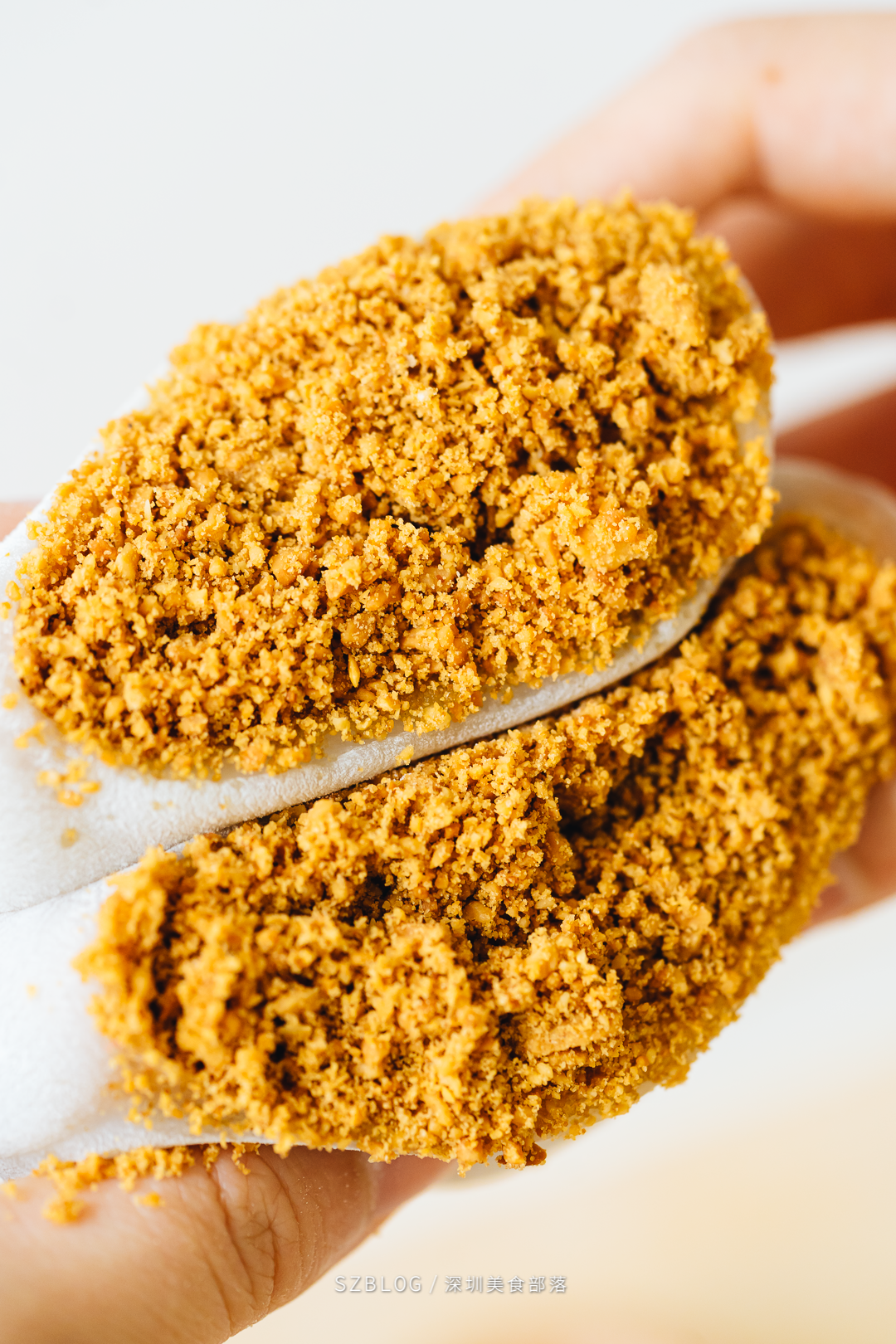 所有的糯米糍都是现点现做,捏皮、加料、包馅...米奇手速飞快,差不多几十秒就包好一个。老板用料毫不含糊,每块糯米皮都被塞得装不下了。白白胖胖的糯米糍,外皮轻轻一扯,里面的花生碎就漏出来了。糯米皮的厚度适中,韧性很足,吃起来还有种椰香味。不过吃的时候可要小心,不然就会跟我一样身上全是花生碎。