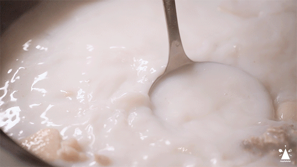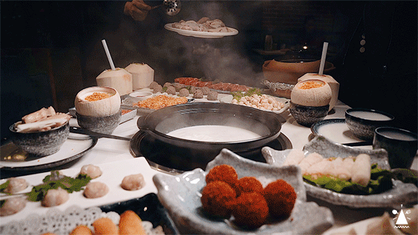 锅开第一件事就是来一口汤,味道没有很甜,却阵阵都是椰香。一小口汤送往嘴里那一刻,这个冬夜都被治愈了。